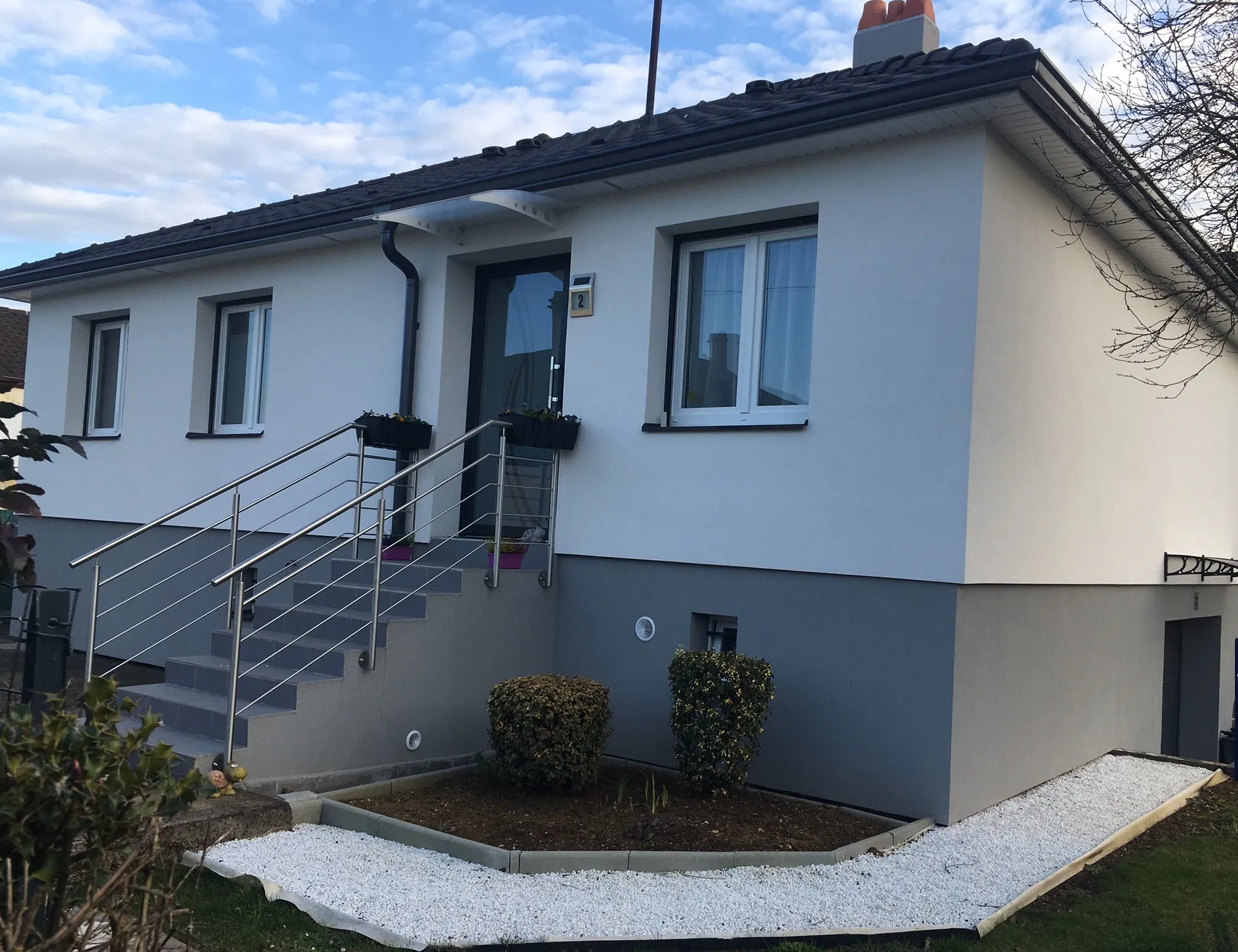 L’isolation thermique extérieure est une solution particulièrement efficace pour supprimer les ponts thermiques et limiter les déperditions de chaleur. Contrairement à une isolation intérieure, elle permet de traiter l’enveloppe du bâtiment de manière continue, sans réduire la surface habitable. Sur ce projet, un isolant adapté a été posé sur les murs extérieurs, suivi de l’application d’un revêtement de finition assurant à la fois protection et valorisation esthétique.